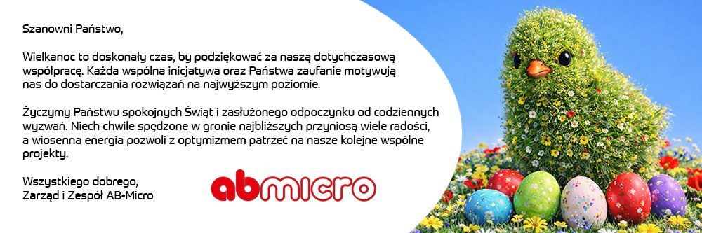 AB-MICRO Sp. z o.o. od 1984 roku dostarcza kompleksowe rozwiązania z zakresu automatyki przemysłowej, elektrotechniki i systemów sterowania. Specjalizujemy się w integracji nowoczesnych technologii w przemyśle, oferując zarówno produkty renomowanych światowych marek, jak i pełne wsparcie techniczne, projektowe oraz wdrożeniowe.